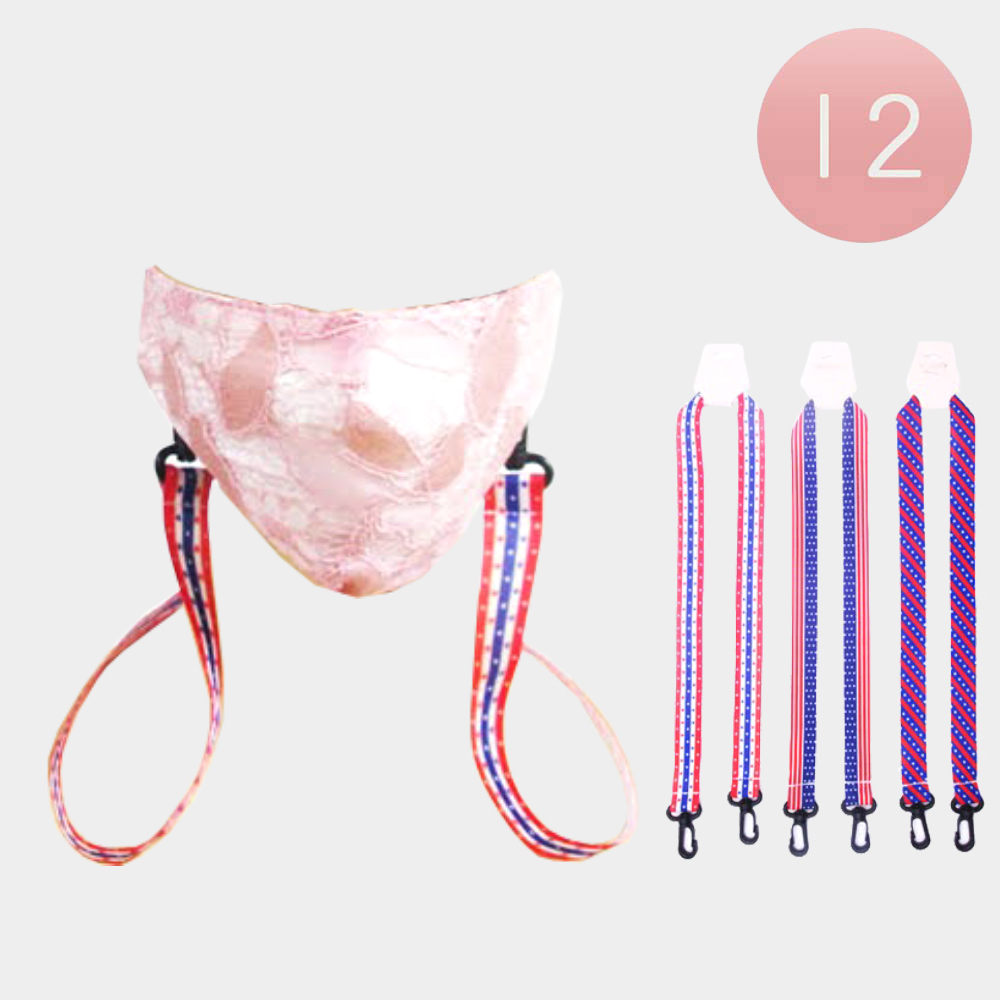 12PCS - Assorted American USA Flag Print Lanyard Mask Chains