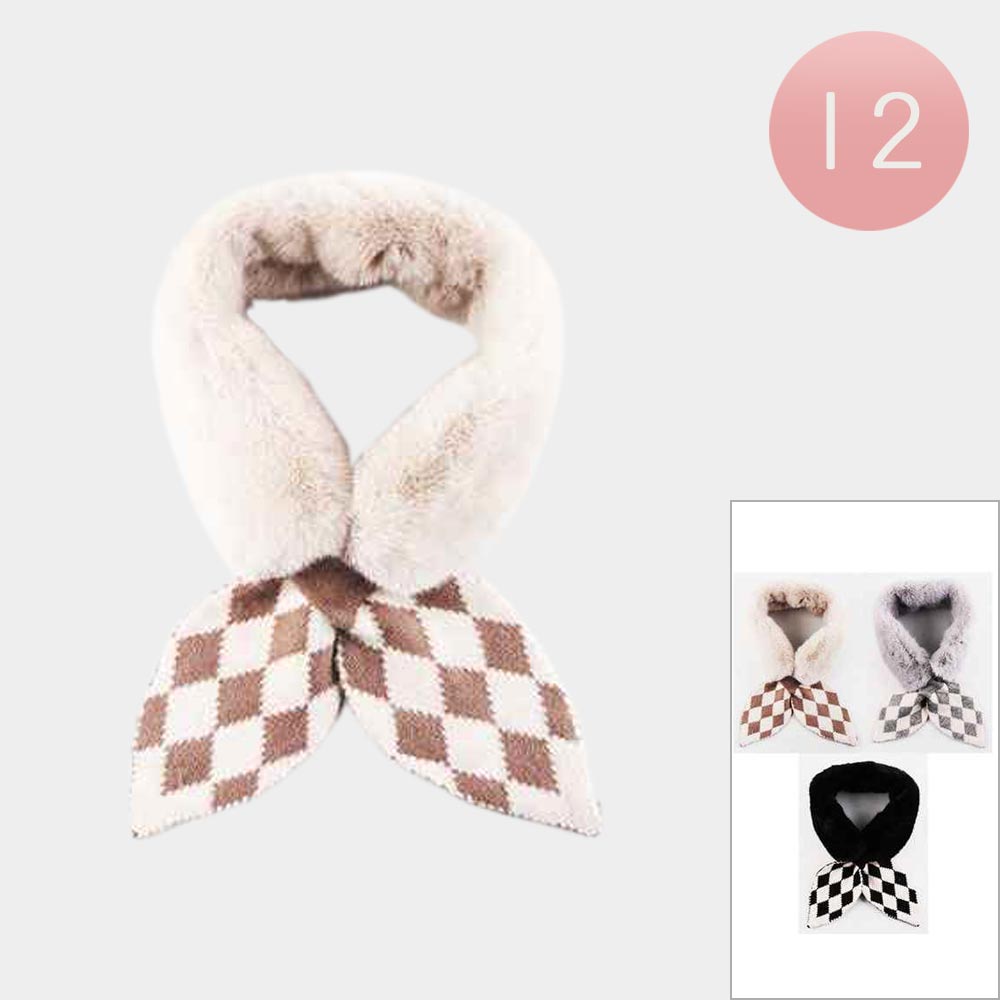 Details • Size : 3.5" X 21" • Material : 100% Polyester • Wrap up in style with this faux fur collar scarf featuring classic argyle bow ends for a timeless look. Soft and elegant, it’s the perfect accessory to add warmth and sophistication to casual or dressy outfits, available in assorted colors to complement your winter wardrobe.