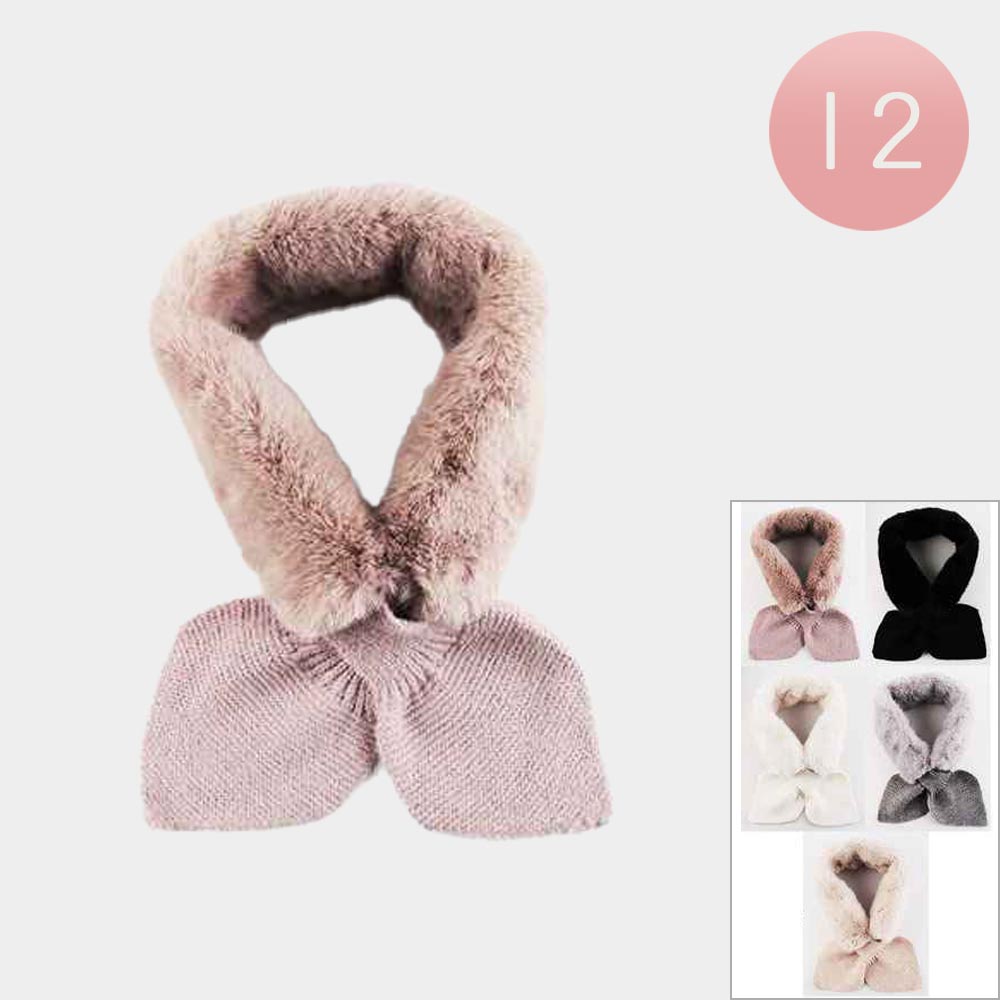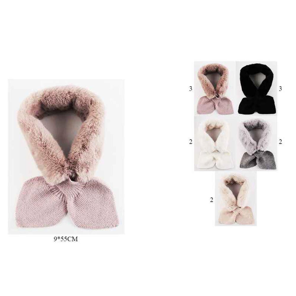 Details • Size : 3.5" X 21" • Material : 100% Polyester • Keep warm in style with this faux fur collar scarf featuring soft knitted bow ends for a cozy finish. Elegant and versatile, it’s perfect for layering over casual or dressy looks, offering both comfort and sophistication. Available in multiple colors to suit any winter wardrobe.
