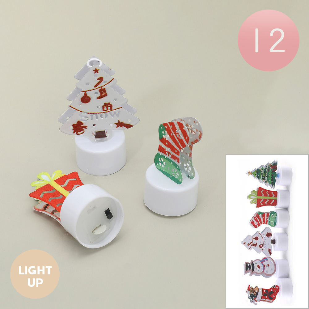 • Brighten your celebrations with Christmas-themed LED tabletop lights featuring fun holiday shapes. Safe and reusable, these flameless lights add charm to parties, home dĂ©cor, and festive displays. Perfect for creating a cheerful seasonal atmosphere.