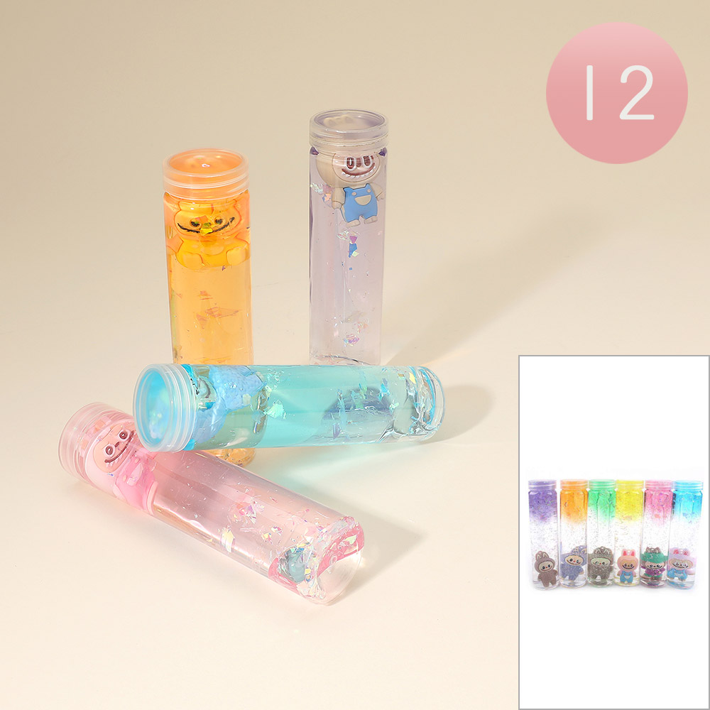 Details • Size : 1.5" X 6.25" • Spark creativity with this character glitter tube slime. Each tube contains shimmering slime and a cute collectible figure for sensory fun and imaginative play. Perfect for parties, gifts, or stress relief, this colorful set adds excitement and sparkle to every moment of hands-on play.