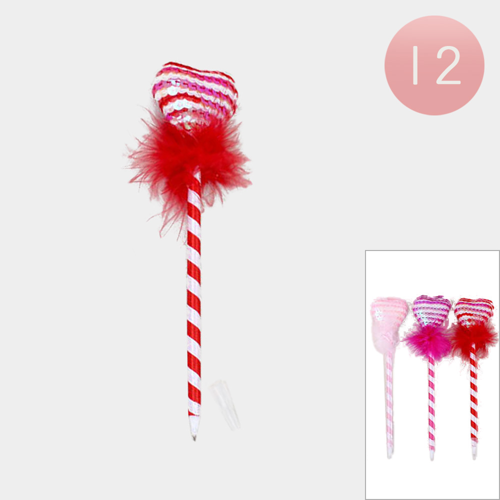 Details • Size : 8.5" L • Brighten your writing with this striped sequin heart feather pen. Featuring a soft feather accent and sparkly heart top, it’s perfect for school, journaling, or gifting, adding a fun and whimsical touch to every note or doodle.