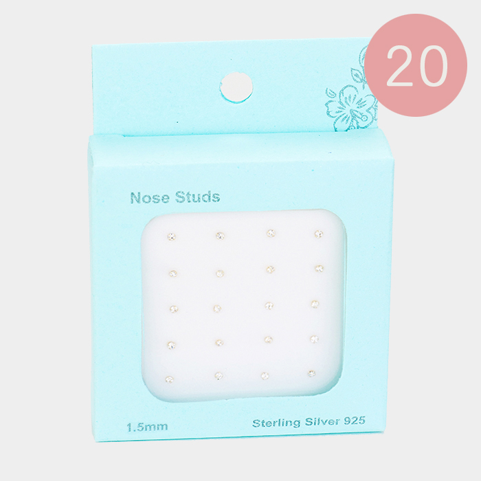 20PCS - Gold Tiny Crystal Sterling Silver Nose Studs