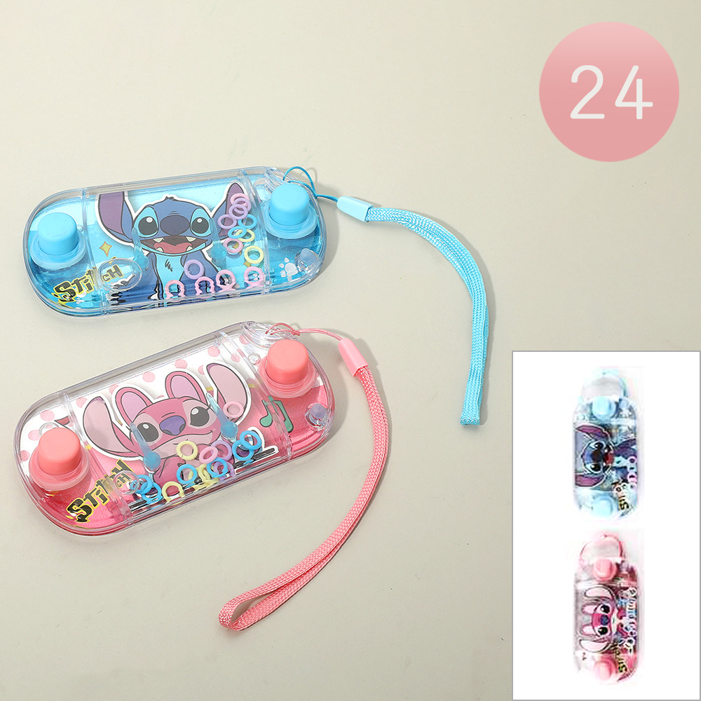 Details • Size : 4.25" X 2.25" • Wristlet Size : 6.25" L • Adorable Stitch-themed handheld water ring game in a 24-pack, featuring fun blue and pink designs with wrist straps for easy play. Perfect for party favors, classroom rewards, or travel toys, these engaging mini games keep kids entertained with interactive water-ring challenges.