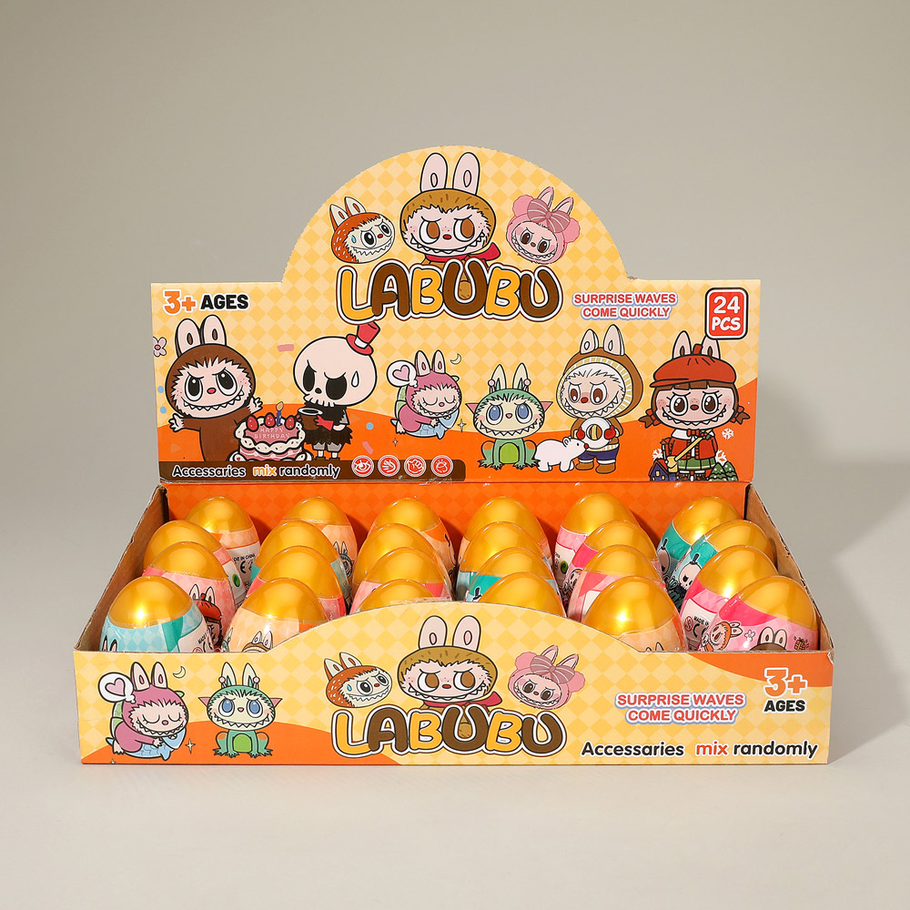 Details • Size : 2" X 3" • Fun surprise capsule toy collection featuring 24 mini character figures. Each egg includes a random collectible with keychain strap and stickers. Perfect for kids and collectors who love mystery toys, blind boxes, and adorable accessories for play or decoration.