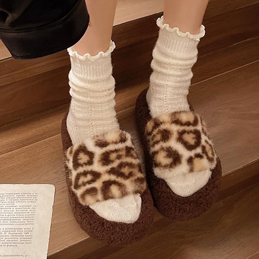 Details • Size : S/M/L (1 Small / 2 Medium / 3 Large) • Material : 100% Faux Fur • Keep your feet warm and stylish with these cozy fuzzy slippers featuring a bold leopard print design. Soft and comfortable, they are perfect for lounging at home while adding a playful touch to your look. Ideal for everyday wear indoors, offering both comfort and chic style.