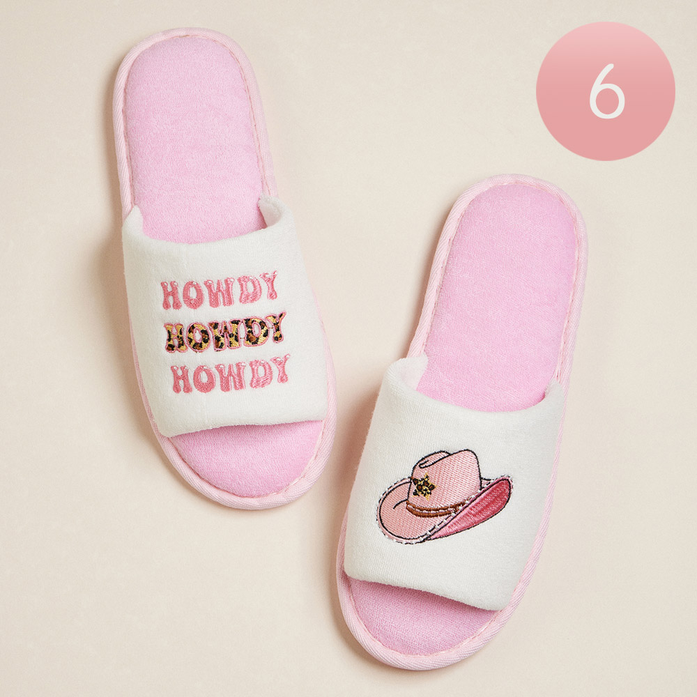 6Pairs - HOWDY Message Cowboy Hat Embroidered Pool Side Slippers / Home Indoor Floor Slippers
