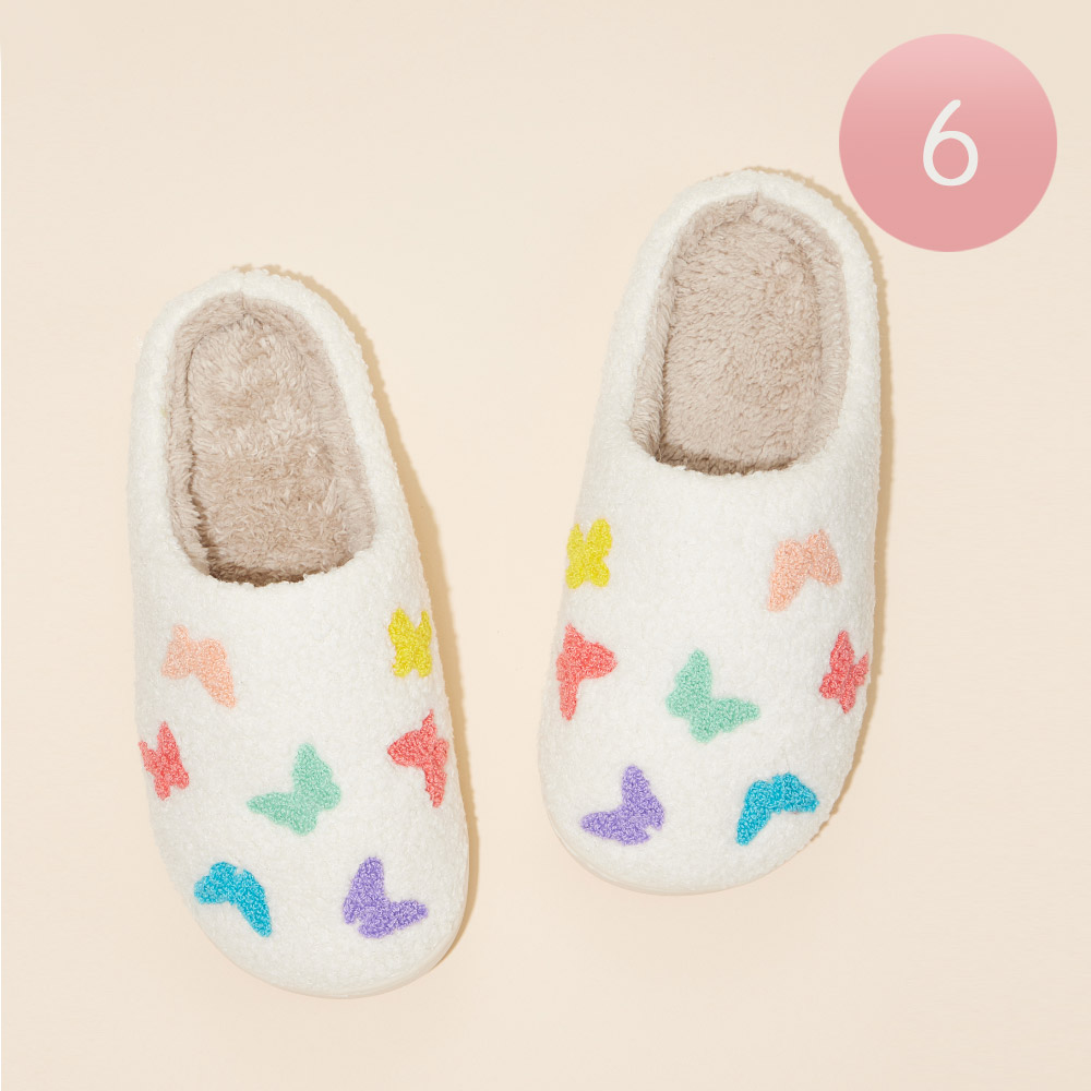 6Pairs - Multi Colored Butterflies Pattern Home Slippers