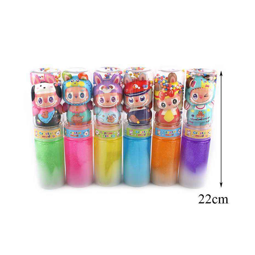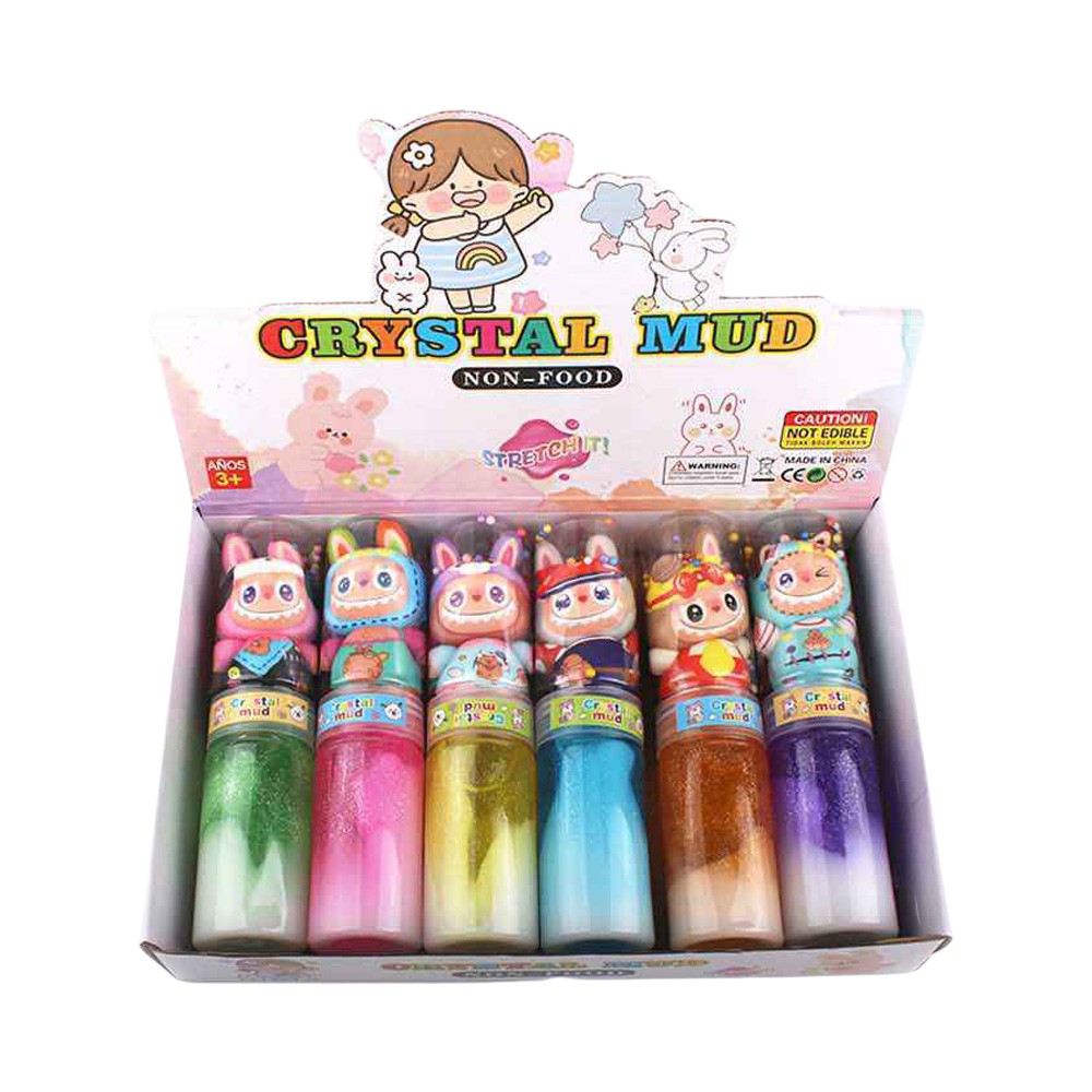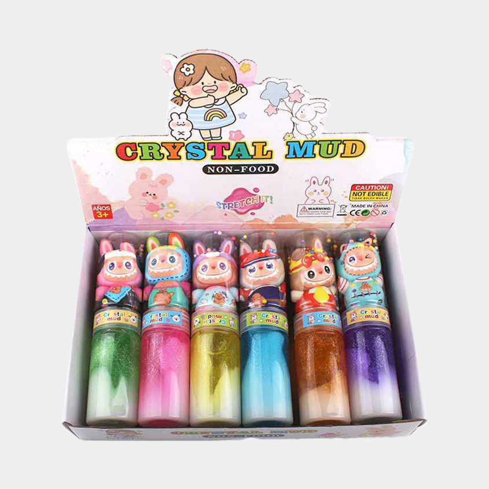 • Crystal Mud glitter slime bottles featuring adorable character toppers and vibrant layered colors. Fun, stretchy, and squishy texture makes it perfect for sensory play, stress relief, and party favors. Each bottle is filled with colorful glitter slime, offering endless fun and creative playtime.
