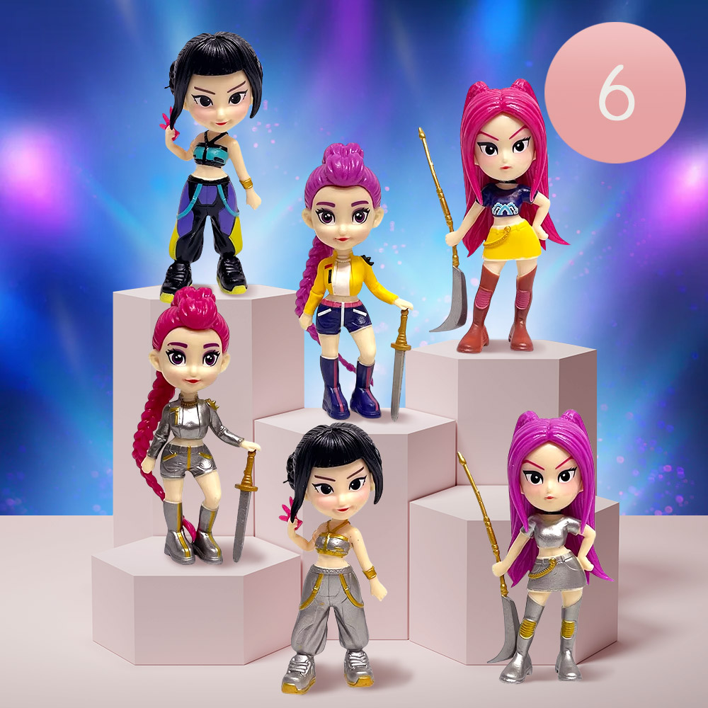 Details • Size : 4" L • Collect your favorite characters with this K-Pop Demon Hunters Keychain Blind Box 6pcs Set! Each blind box contains a surprise keychain & card, perfect for fans and collectors of the popular K-Pop Demon Hunters series. Display them, attach to your bag, or trade with friends for a fun and exciting collectible experience.