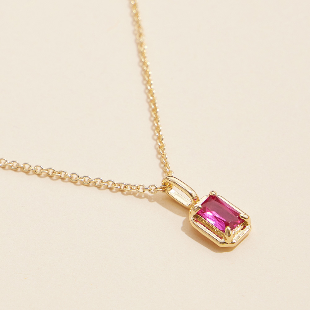 Details • Necklace Size : 16" + 3" L • Includes 1PC Each Month • Jan: Garnet, Feb: Amethyst, Mar: Aquamarine, Apr: Diamond, May: Emerald, Jun: Alexandrite, Jul: Ruby, Aug: Peridot, Sep: Sapphire, Oct: Tourmaline, Nov: Topaz, Dec: Blue Topaz • Elegant rectangular gemstone pendant necklaces in a variety of vibrant hues. Perfect for layering or wearing solo to add a pop of color and sophistication to any outfit. • Lead and Nickel Compliant