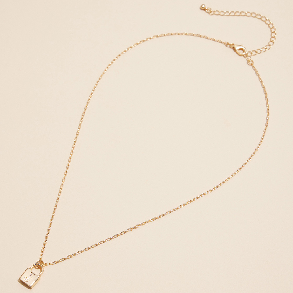 • Elevate your style with this padlock letter pendant necklace, designed with a personalized initial charm on a sleek chain. Perfect for layering or wearing solo, it adds a modern, meaningful touch to any outfit.