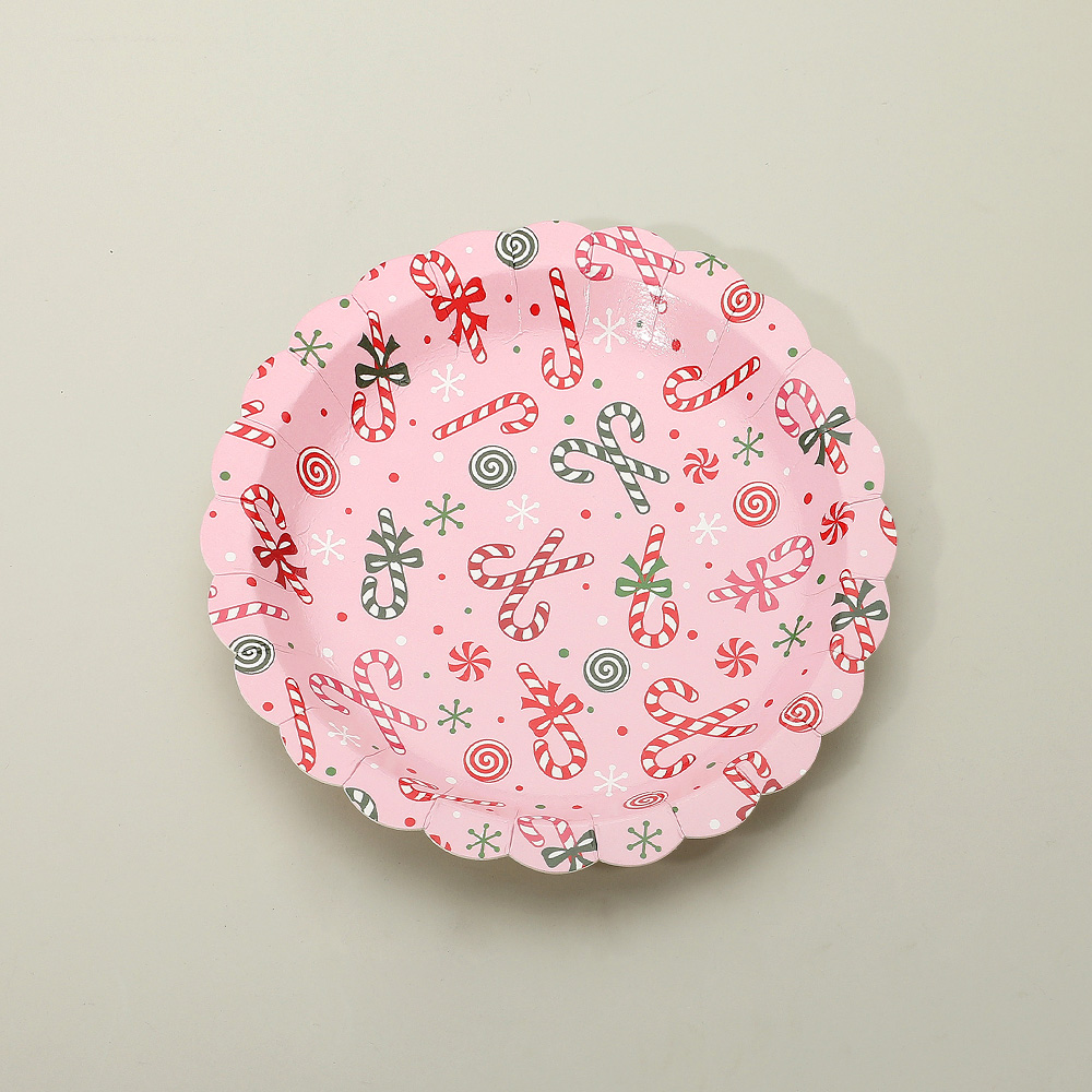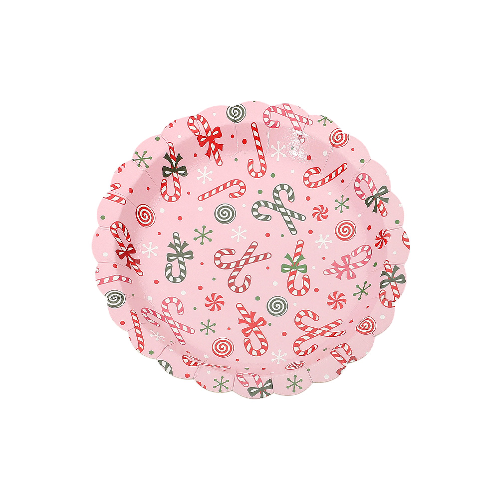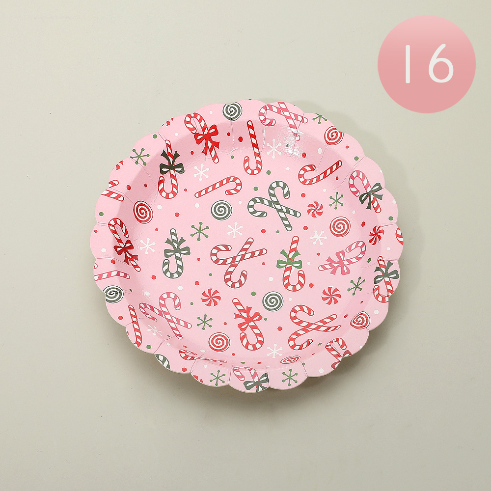 Details • Size : 7" X 7" • Bring sweetness to your holiday gatherings with these candy cane paper plates featuring a festive design and scalloped edges. Perfect for Christmas parties, family meals, and seasonal celebrations, this 16-pack combines convenience with cheerful holiday charm.