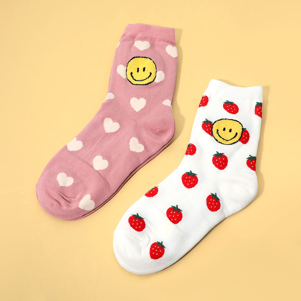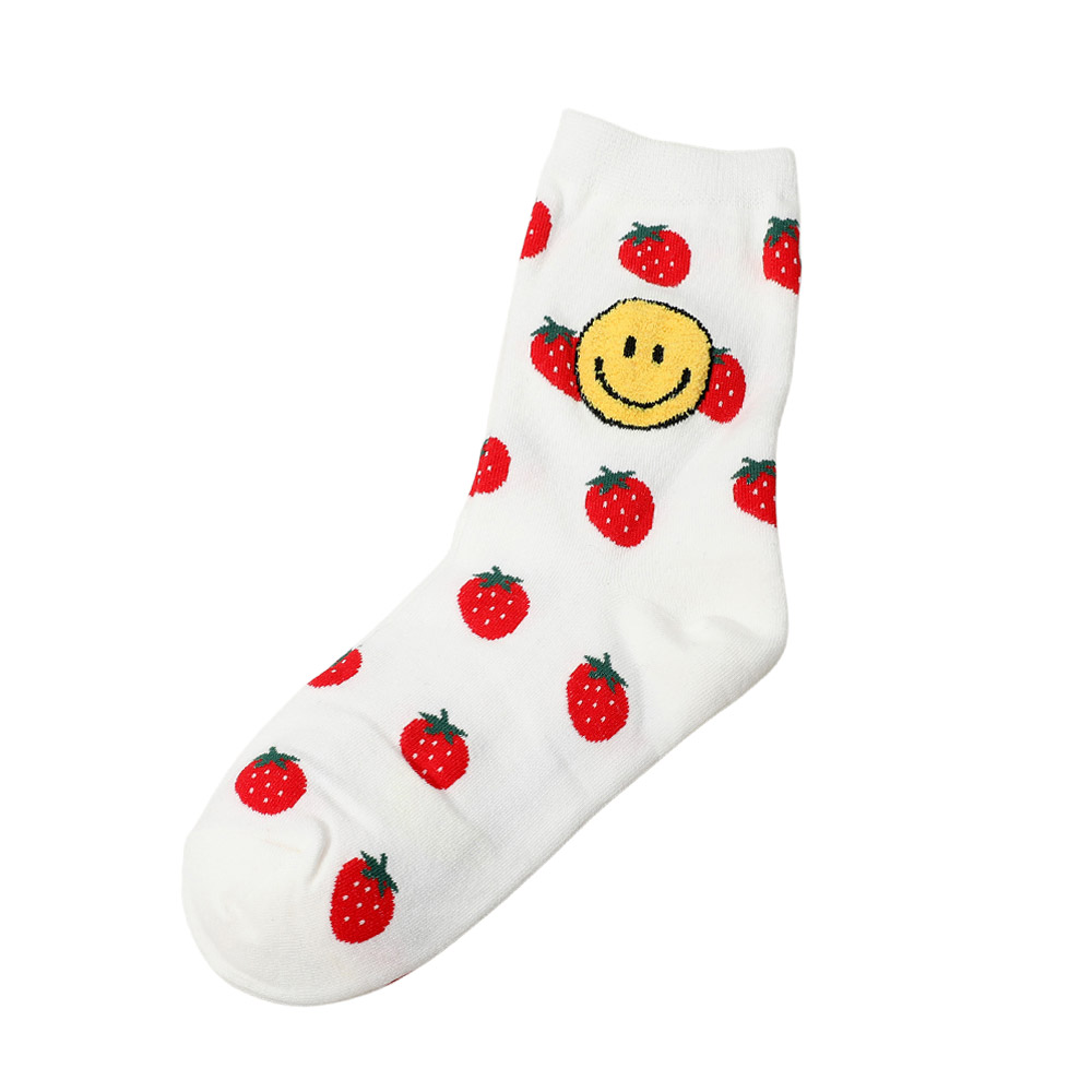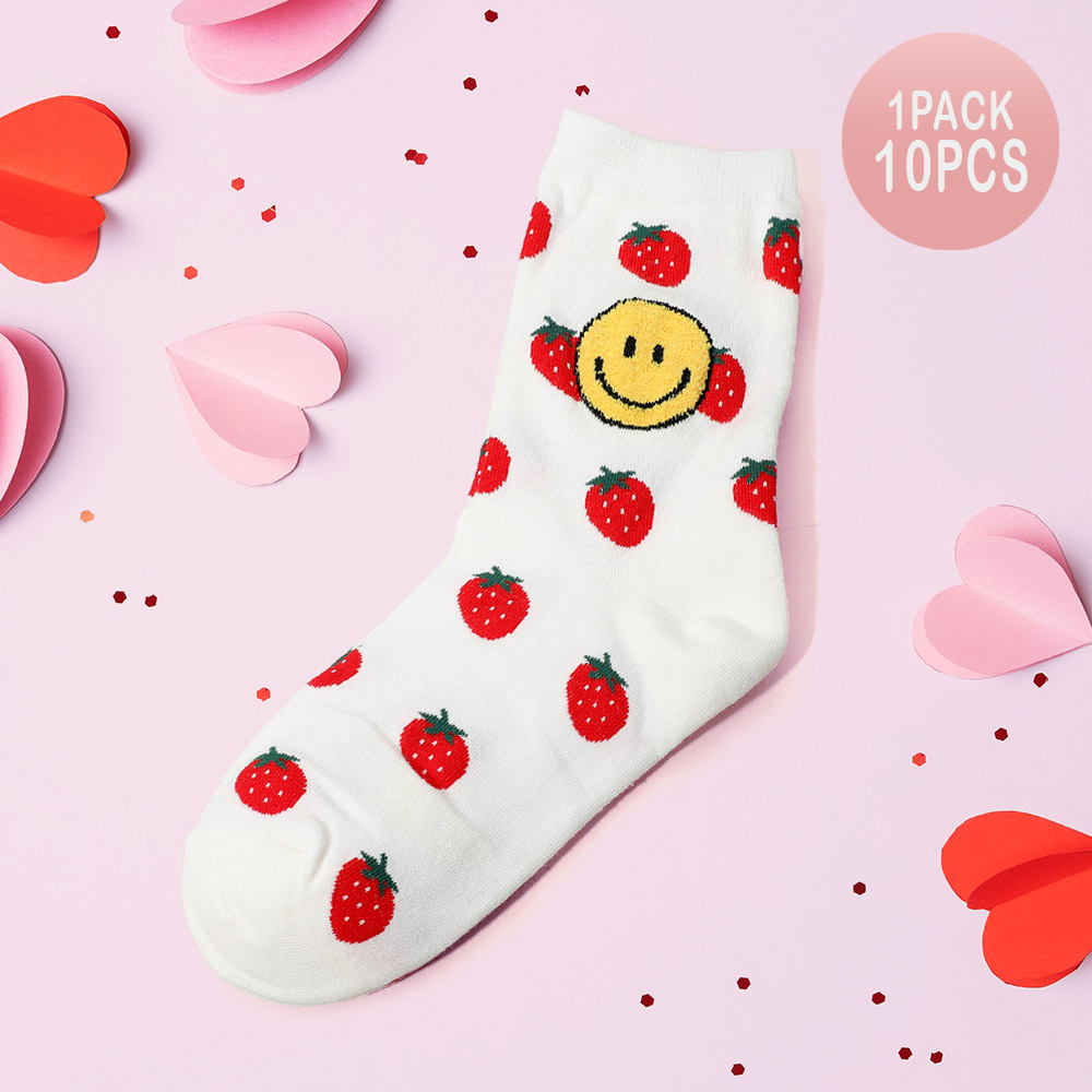 10Pairs - Smile Strawberry Pointed Socks