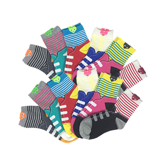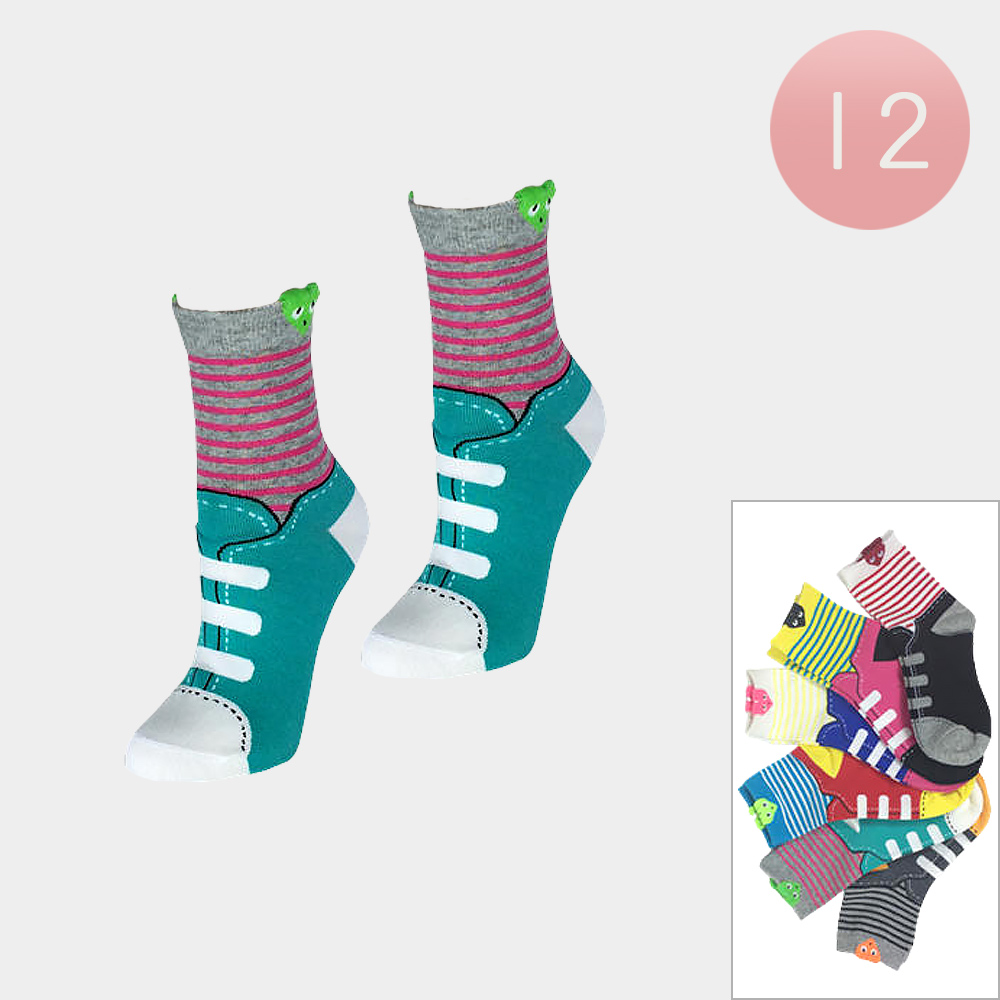 12PAIRS - Striped Shoe Lace Fun Cotton Socks