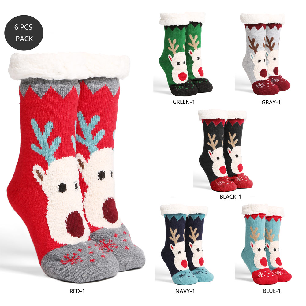6Pairs - Faux Sherpa Lining Rudolph Socks