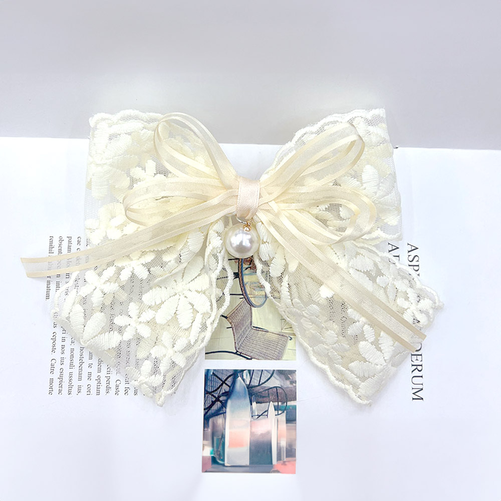 Pearl Pointed Flower Lace Embroidered Barrette