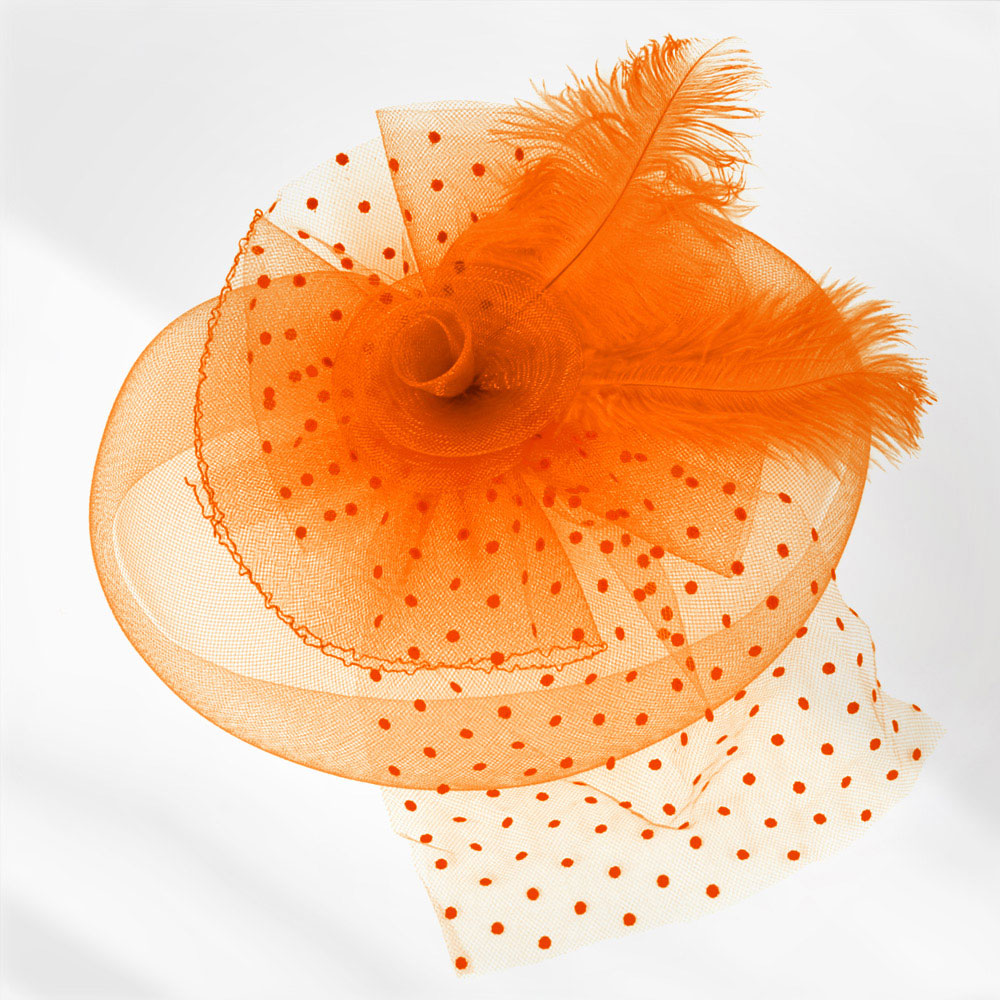 Mesh Flower Feather Pearl Trimmed Fascinator / Headband