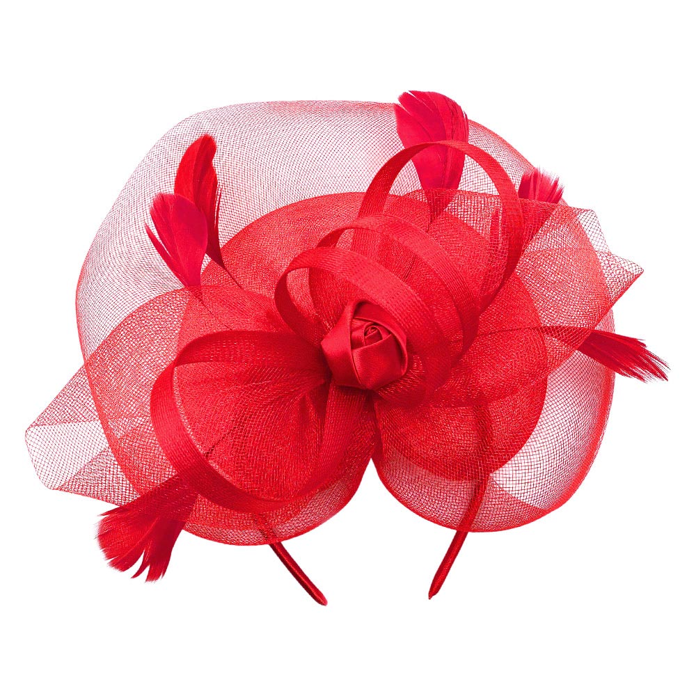 Feather Pearl Cluster Mesh Flower Fascinator / Headband