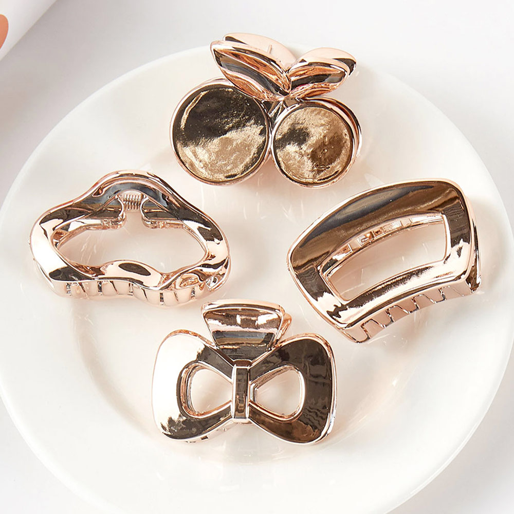 4PCS - Chrome Cherry Bow Cloud Hair Claw Clips