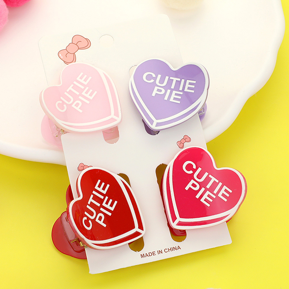 4PCS - CUTIE PIE Message Acetate Heart Hair Claw Clips