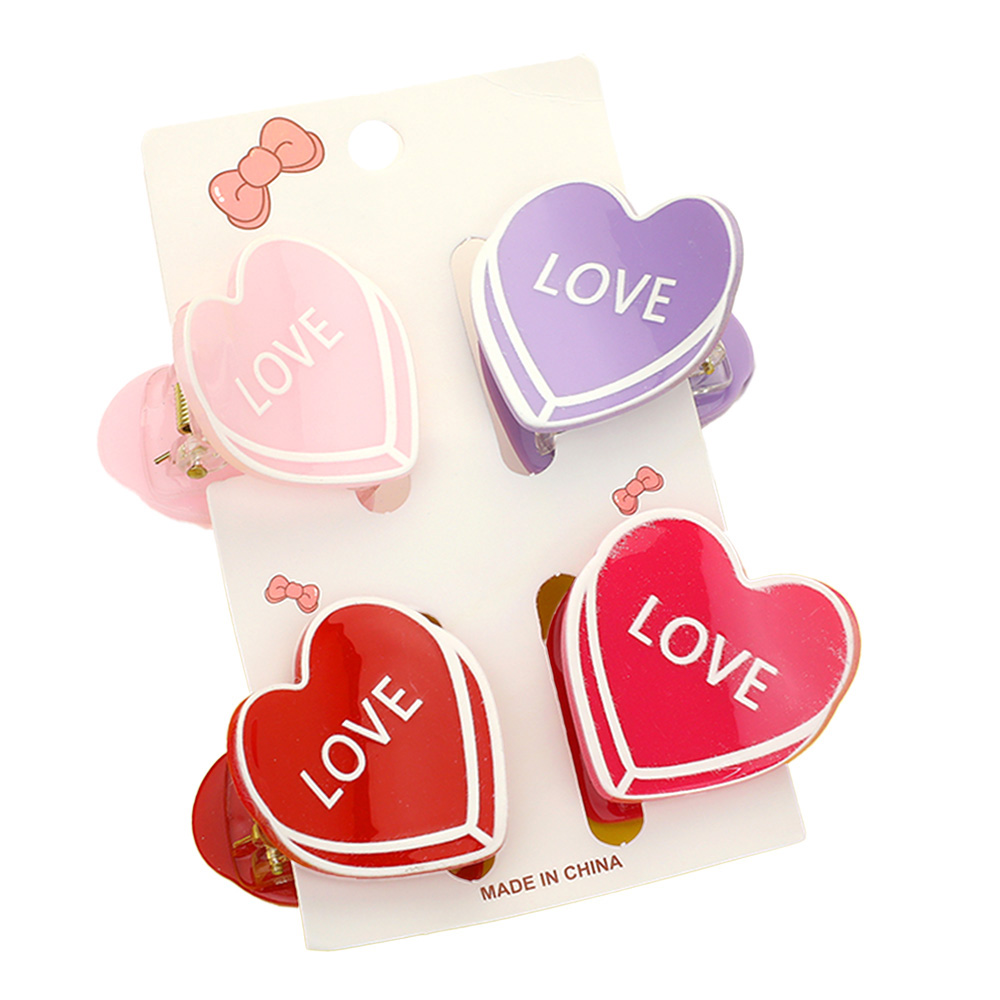 4PCS - LOVE Message Acetate Heart Hair Claw Clips