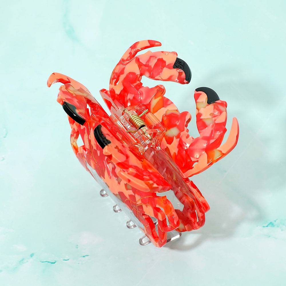 Details • Size : 3.7" X 3" • Make a playful statement with this crab shape hair claw clip featuring a striking patterned design. Fun and sturdy, it offers a secure hold while adding a touch of ocean-inspired charm to your everyday or beachside hairstyles.