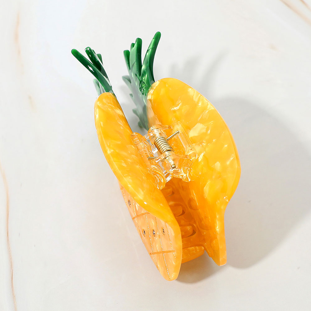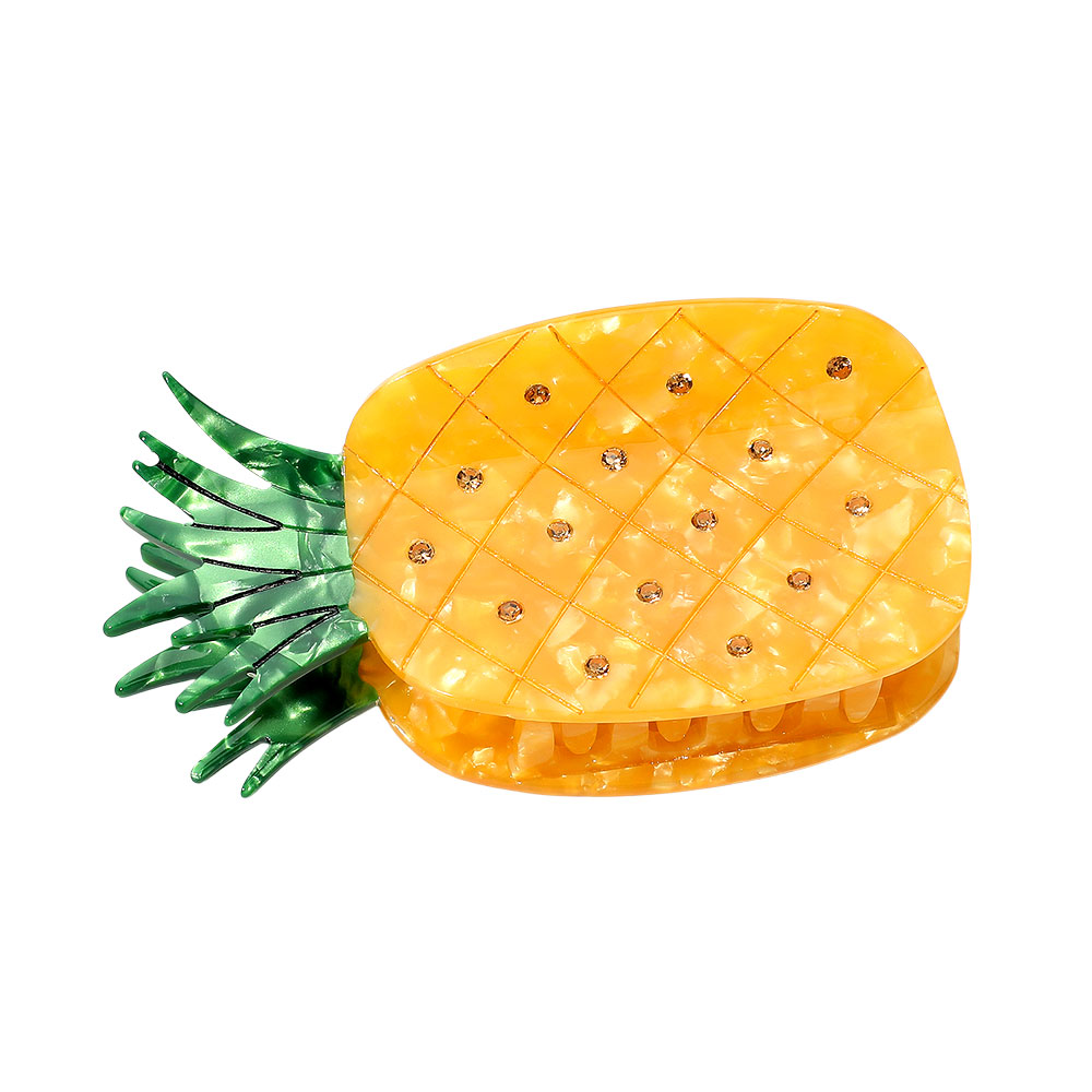 • Add a tropical touch to your style with this pineapple shape hair claw clip featuring rhinestone accents. Fun and functional, it ensures a secure grip while giving your hairstyle a playful and refreshing vibe.