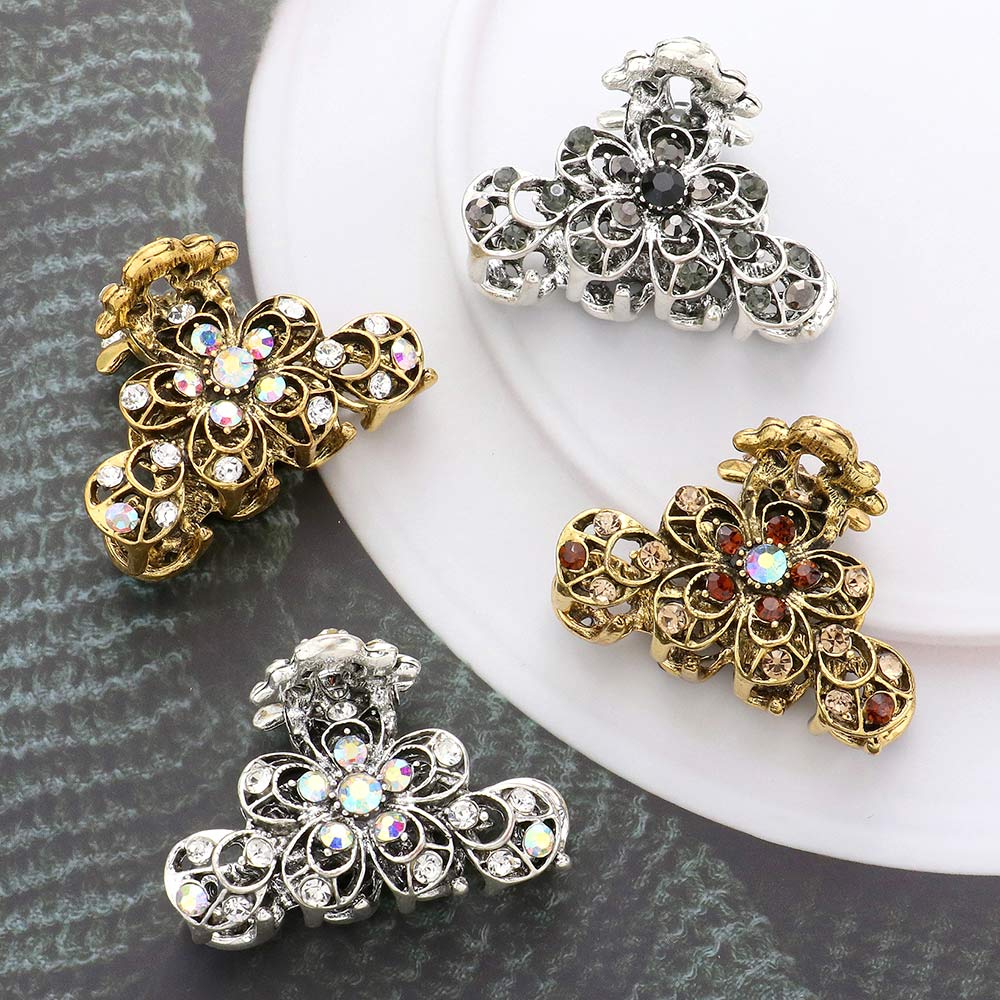 Round Stone Centered Rhinestone Paved Flower Stretch Ring