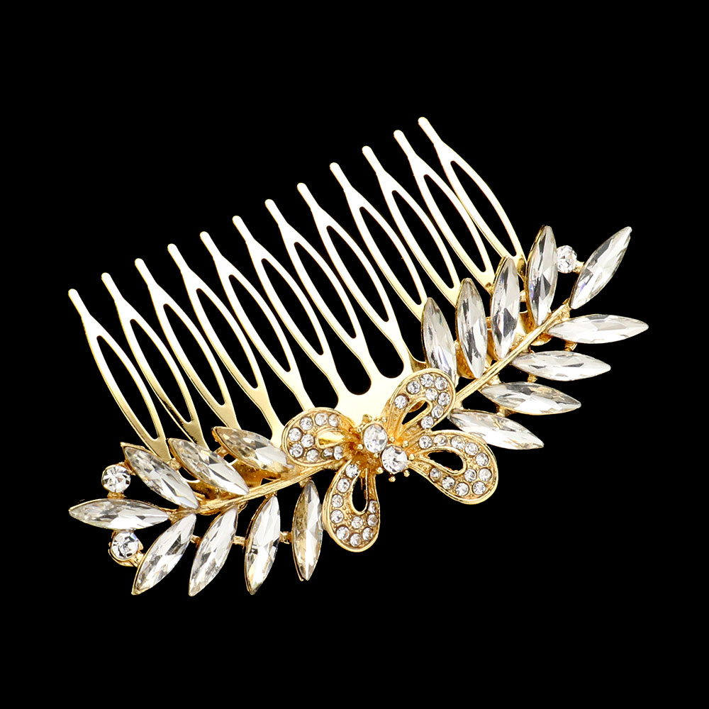 Butterfly Accented Marquise Stone Cluster Hair Comb
