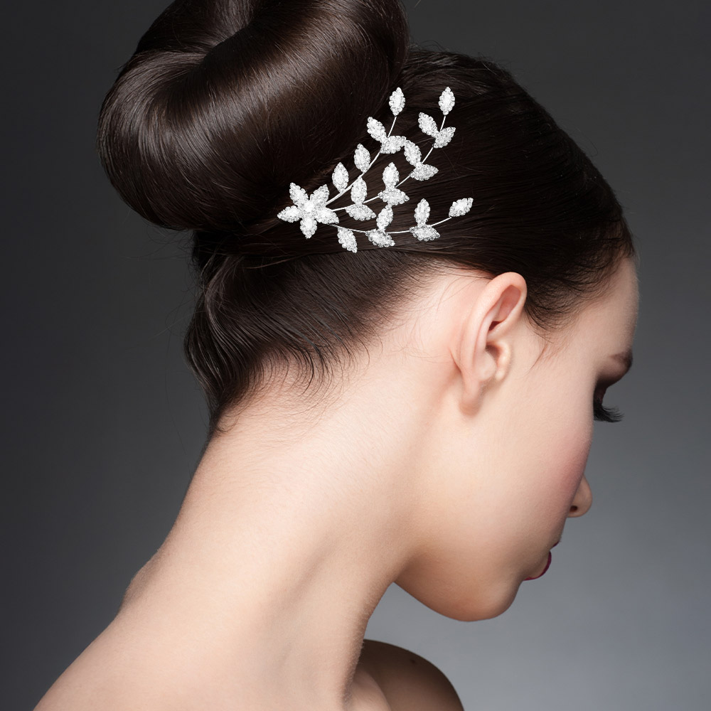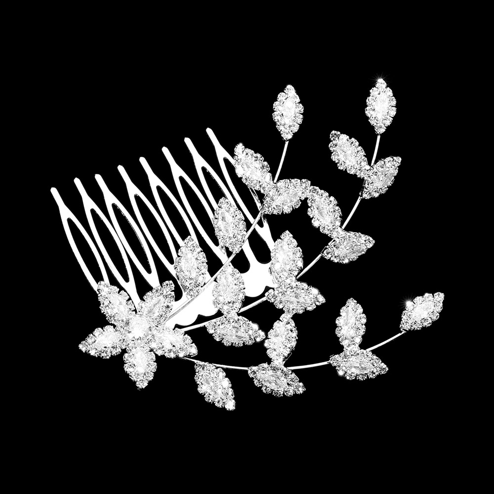 Flower Leaf Vine Marquise CZ Stone Cluster Embellished Hair Comb