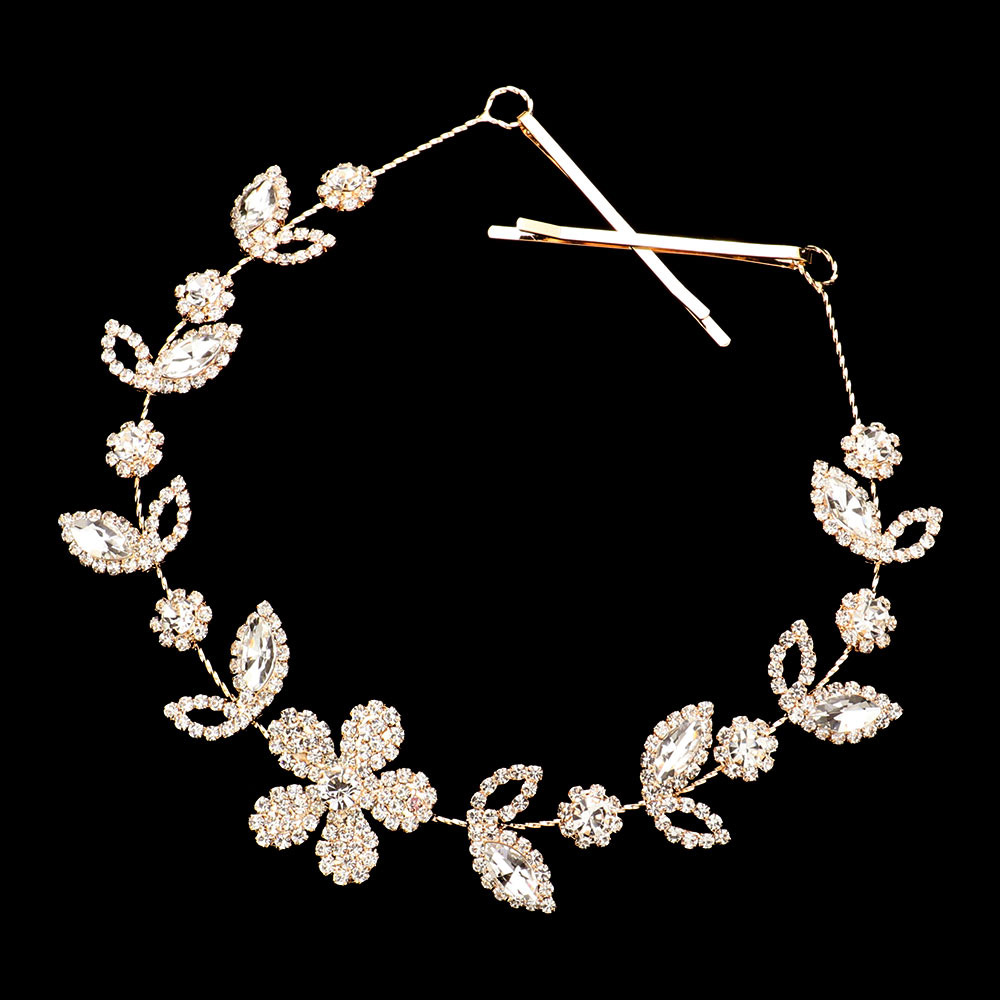 Stone Embellished Flower Leaf Cluster Vine Bun Wrap Headpiece