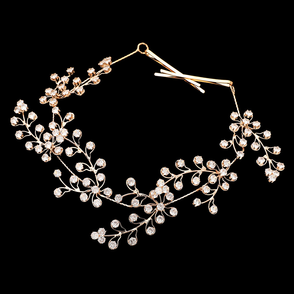 Round CZ Floral Cluster Vine Wrap Headpiece Round CZ Floral Cluster Vine Wrap Headpiece