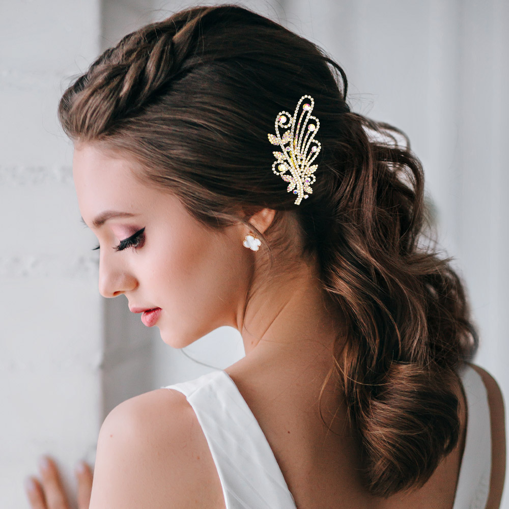 • This elegant hair clip features a refined floral swirl design that enhances bridal and formal hairstyles with timeless charm. Its intricate structure adds a graceful touch to updos, braids, or cascading waves, creating a polished, romantic finish for any special occasion.