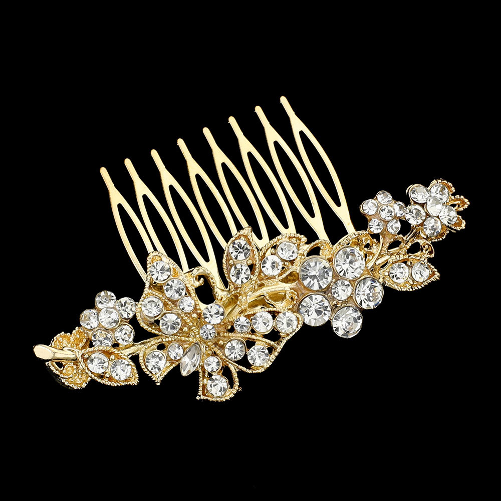 Stone Embellished Butterfly Flower Accented Hair Comb