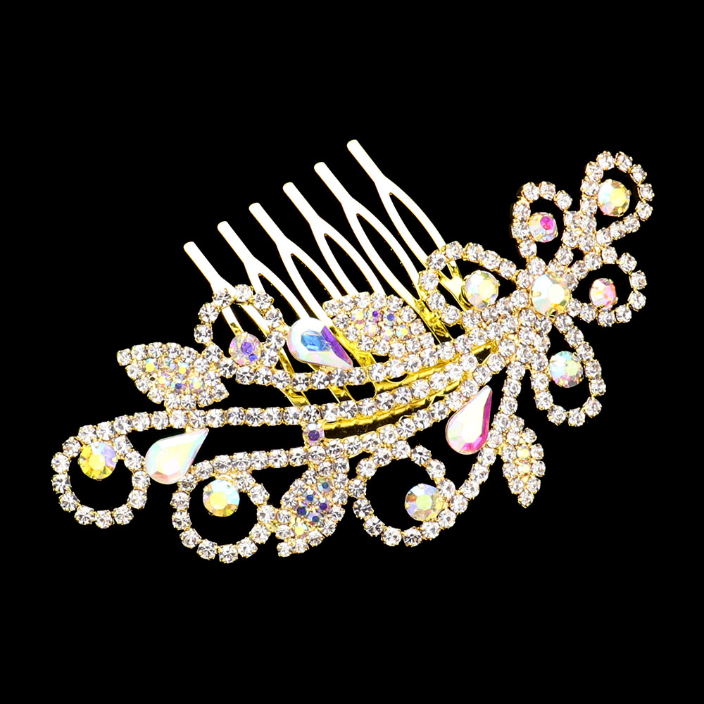 Teardrop Stone Cluster Pointed Rhinestone Paved hair Comb