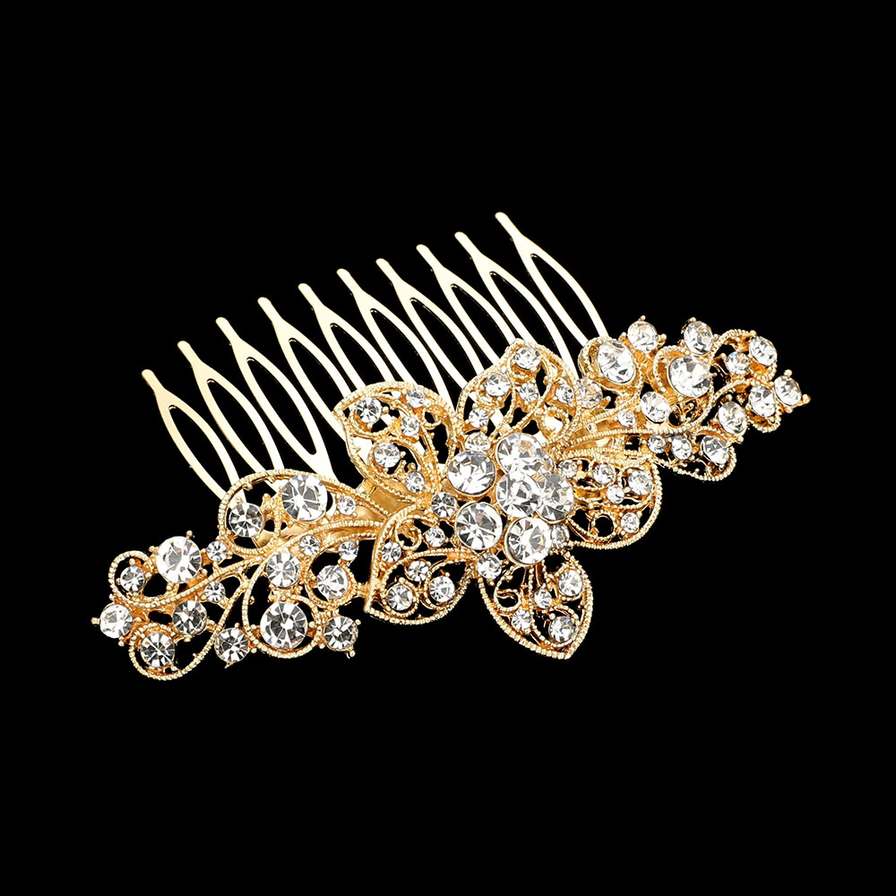 Details • Size : 3.5" X 1.5" • This vintage crystal filigree hair comb combines timeless charm with radiant sparkle. Intricately designed with floral motifs and shimmering stones, it’s ideal for weddings, formal events, or special occasions. A beautifully detailed accessory that adds elegance and sophistication to any hairstyle.