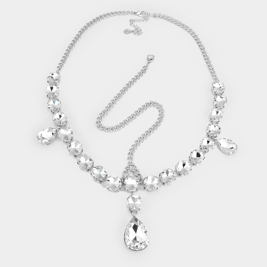 Teardrop Glass Crystal Pearl Vine Evening Necklace
