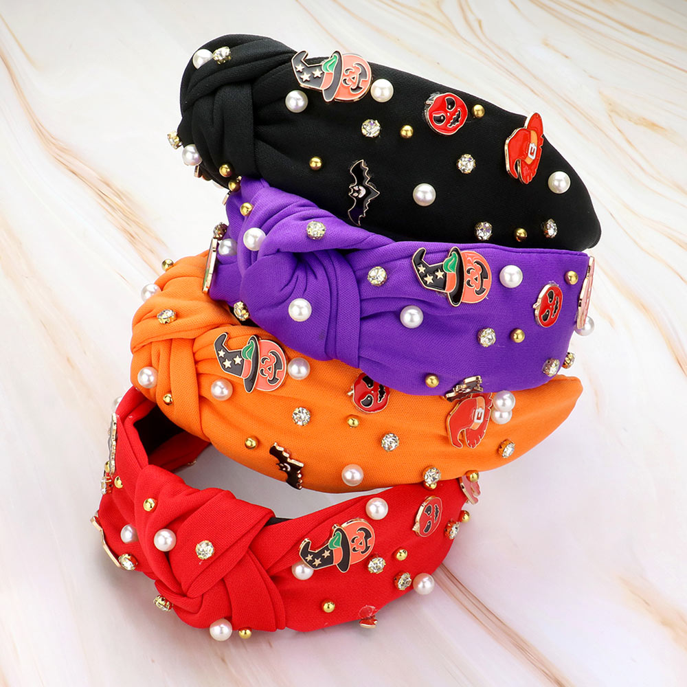 Enamel Halloween Charm Stone Cluster Embellished Knot Headband