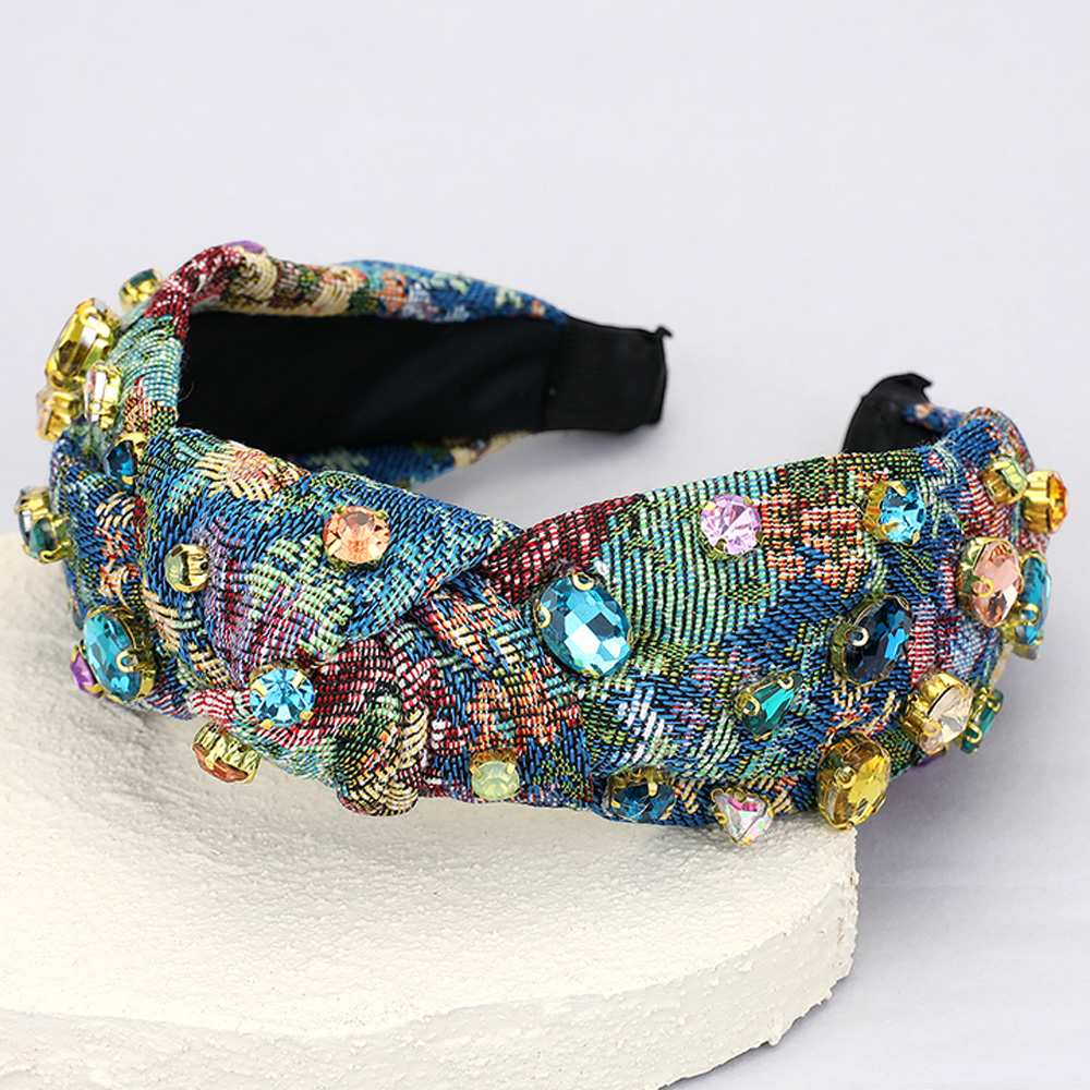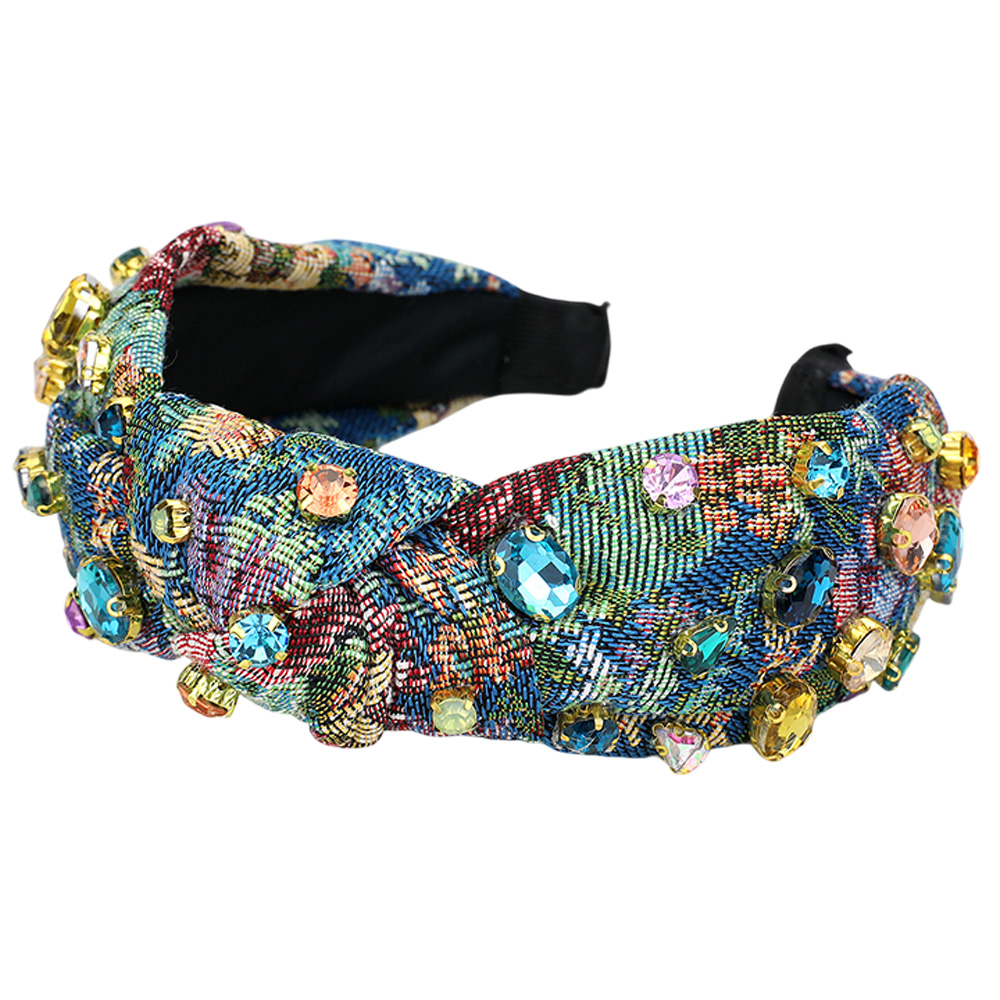Floral Patterned Stone Cluster Embellished Knot Headband
