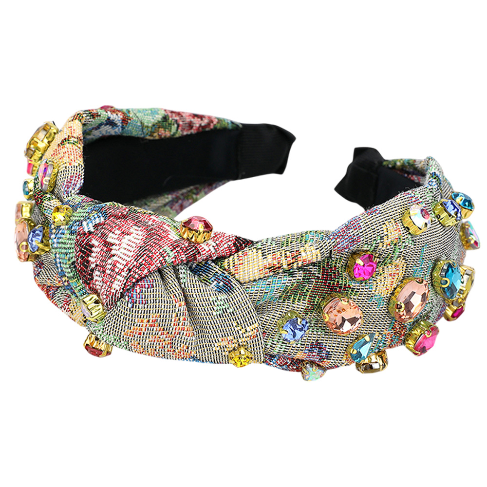 Floral Patterned Stone Cluster Embellished Knot Headband