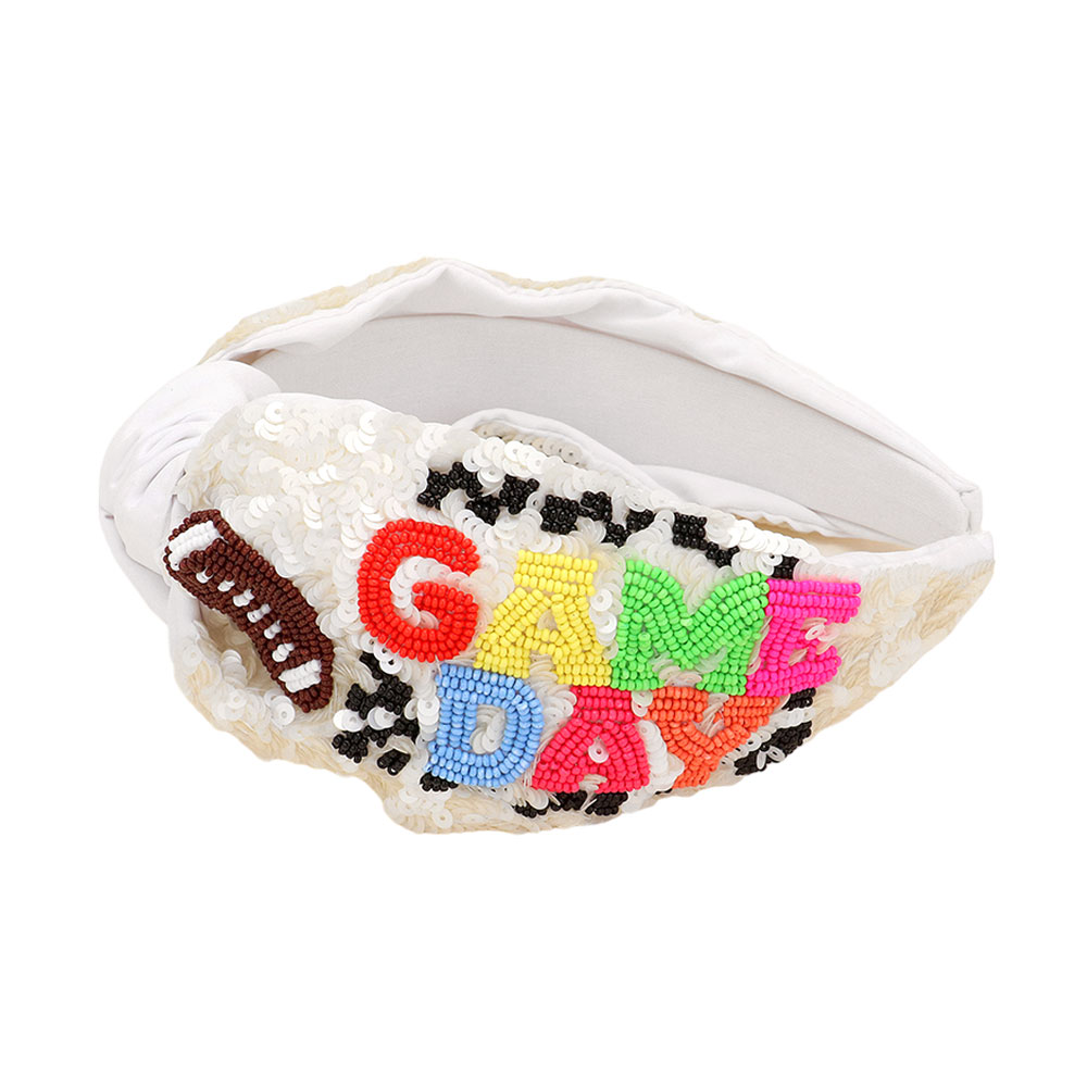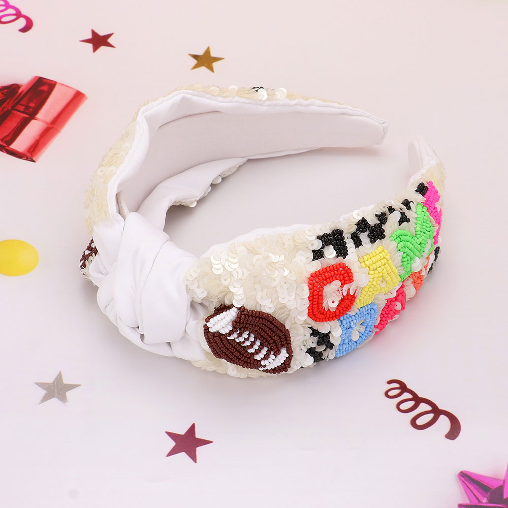 Gameday Message Football Seed Beaded Sequin Knot Headband