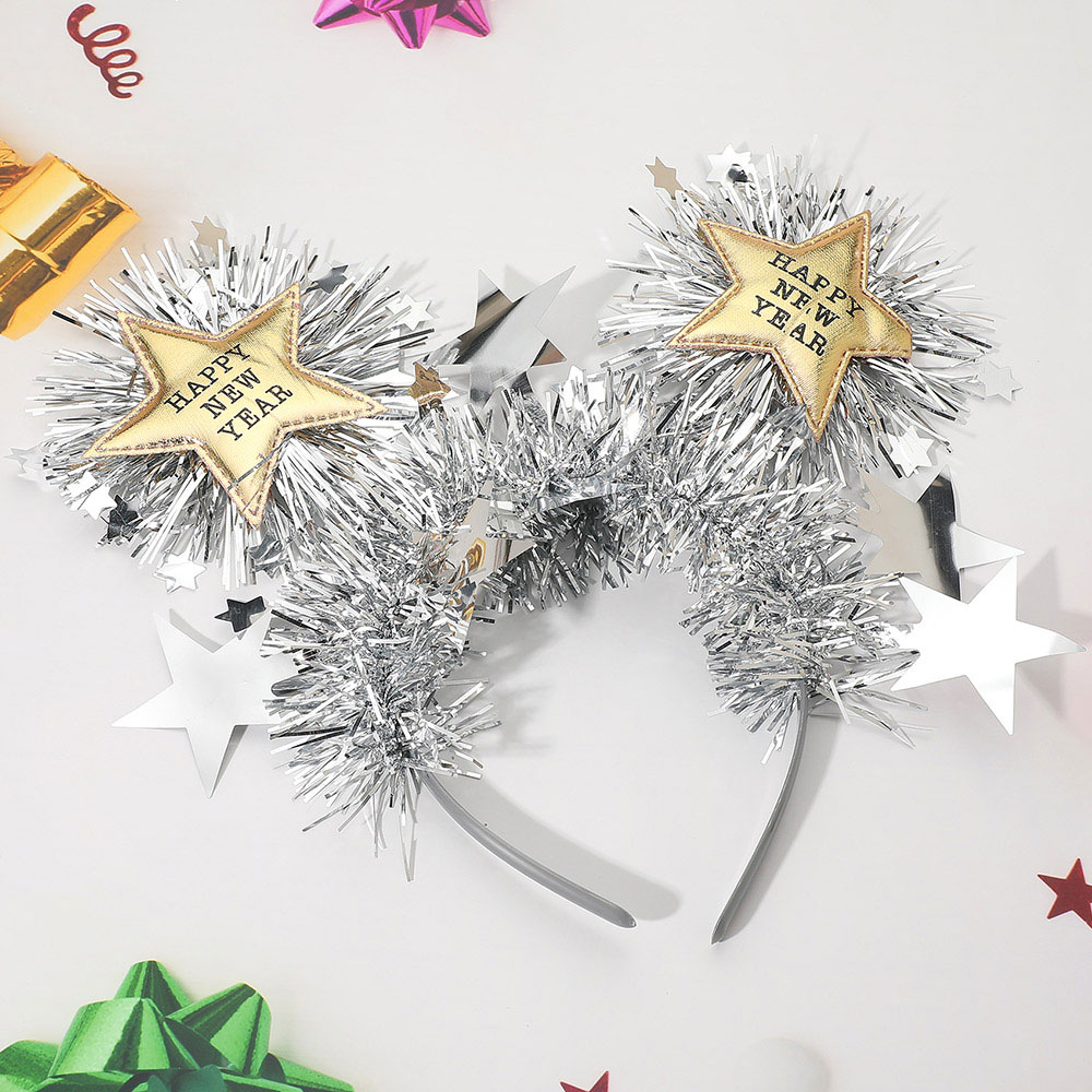 HAPPY NEW YEAR Star Embellished Festive Tinsel Headband