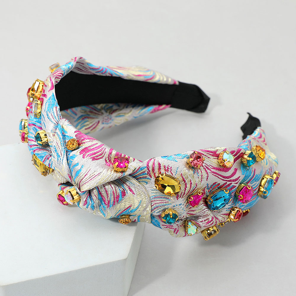 • This luxurious headband features a rich jacquard design adorned with vibrant crystal embellishments for a dazzling statement look. Perfect for adding artistic flair to any ensemble, it offers a bold blend of elegance and creativity, ideal for special occasions or daily glam.