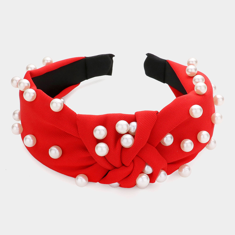 Round Oval Stone Metal Ball Embellished Knot Burnout Headband
