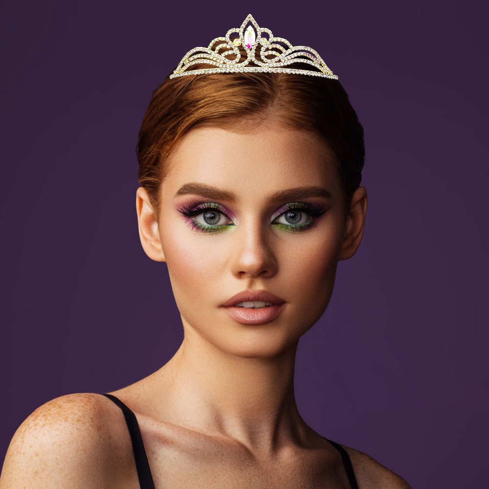 Marquise Stone Accented Rhinestone Paved Princess Tiara