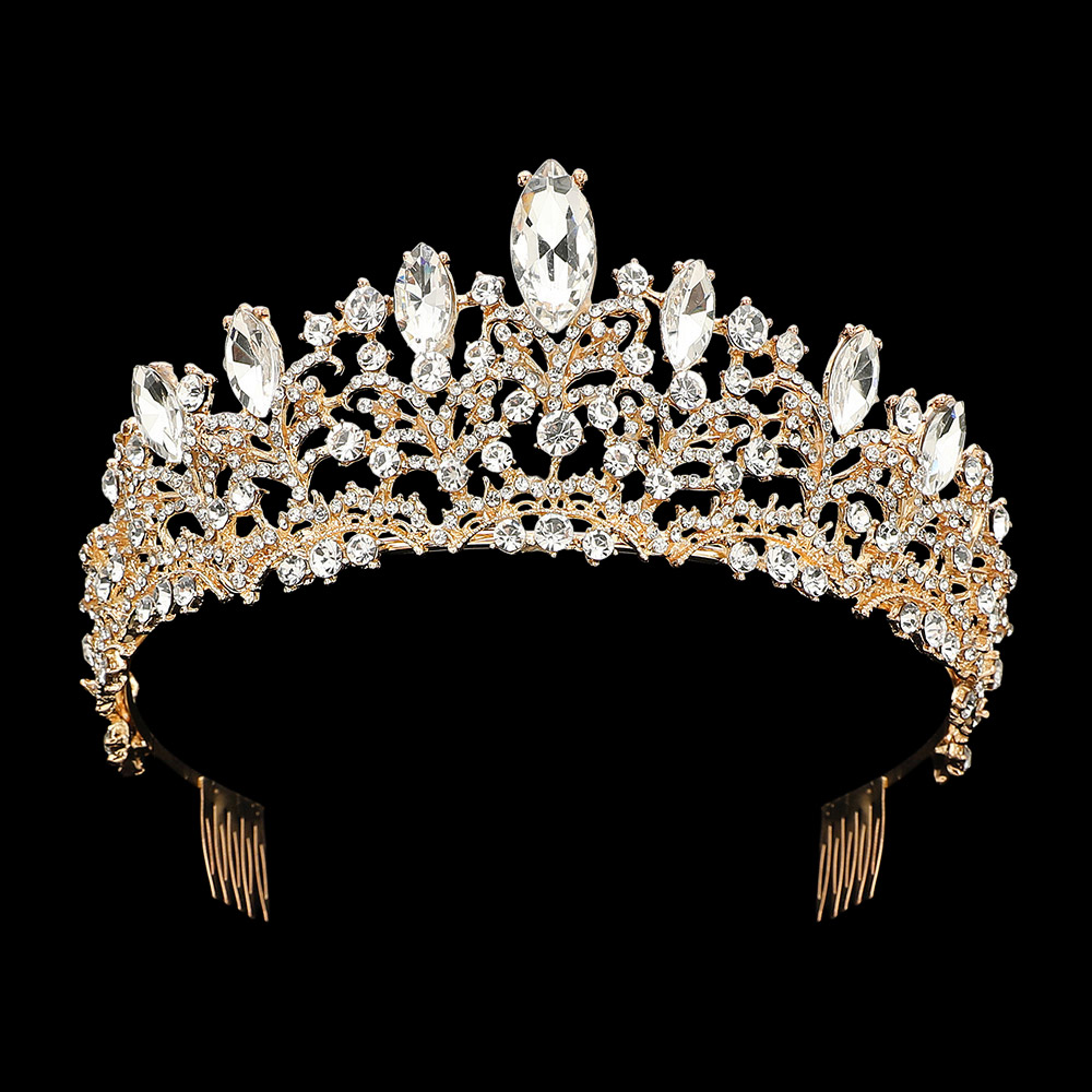 Details • Size : 2.5" H • This ornate tiara features a refined leaf-inspired design accented with brilliant crystal detailing for a radiant, regal finish. Ideal for formal events, weddings, or photoshoots, it adds a luxurious touch that enhances any special-occasion look with timeless elegance and sparkle.