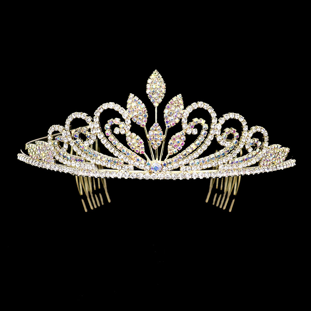 Floral Leaf Design Rhinestone Paved Hair Comb