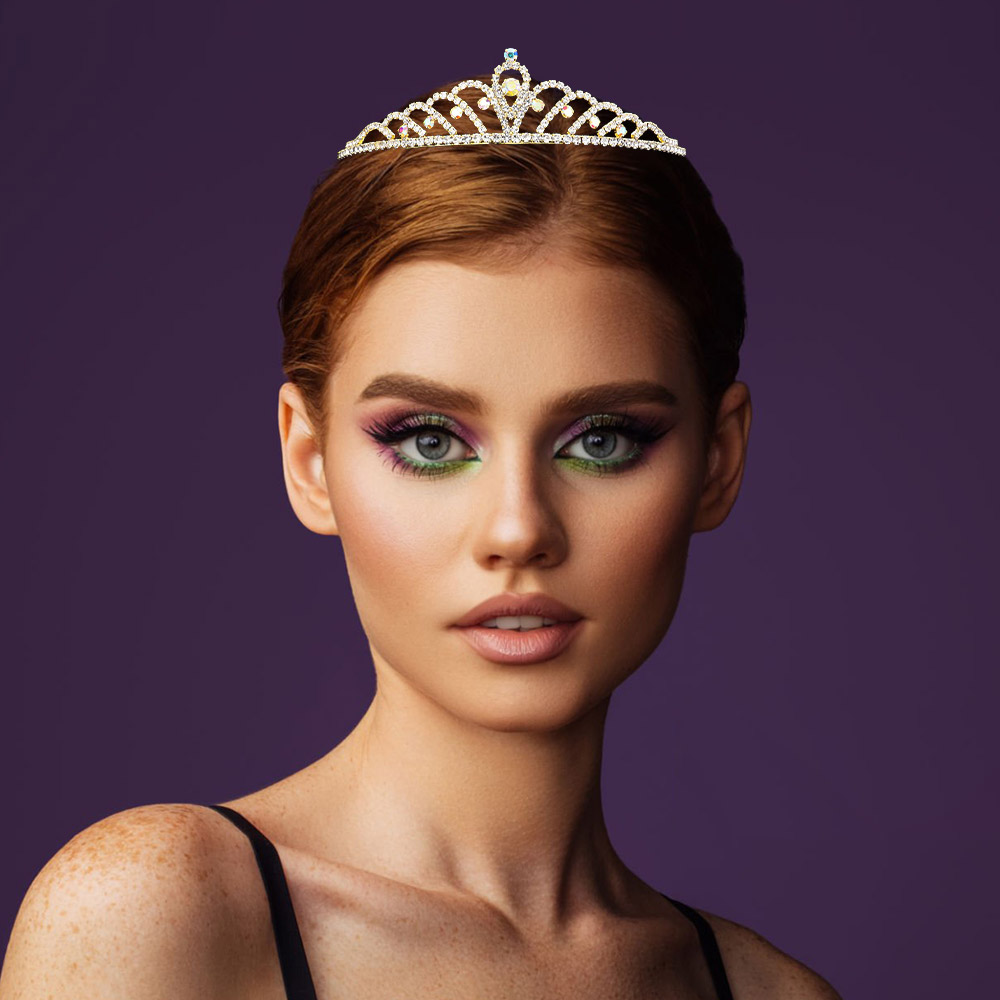 Round Stone Accented Rhinestone Paved Princess Tiara