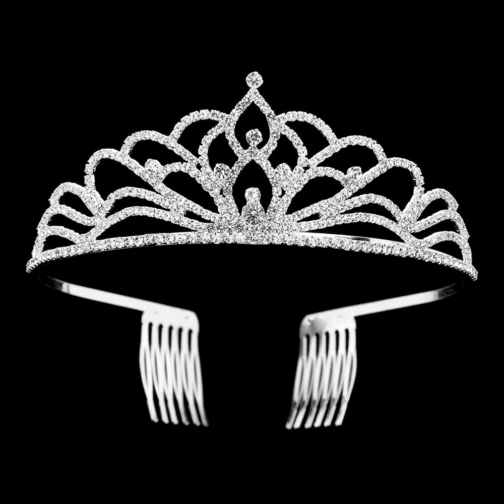 Details • Size : 1.75" H • Stunning crystal tiara with elegant comb attachments for secure wear. Ideal for brides, prom queens, and pageants, this headpiece adds radiant sparkle and timeless sophistication to any hairstyle or formal look.
